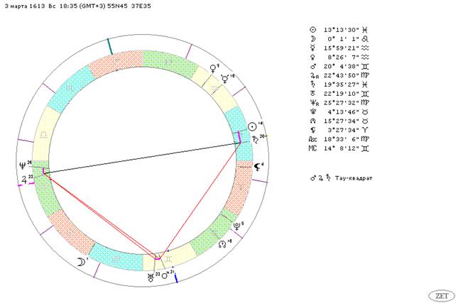 против Юпитера (с Нептуном) и в квадратах с Марс-Ураном. (Еще Плутон в малом тау-квадрате с Сатурном и