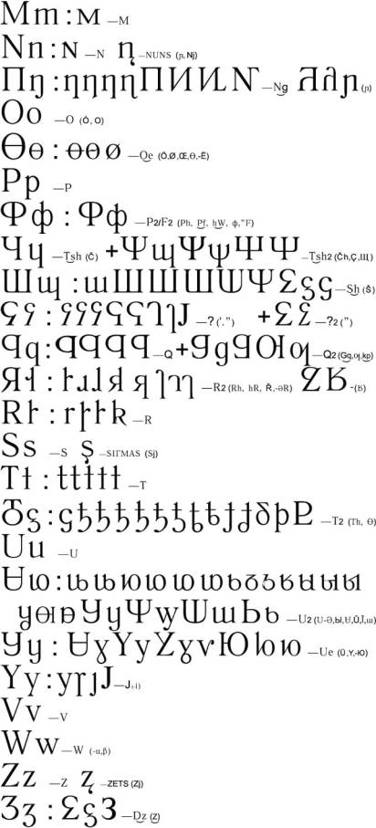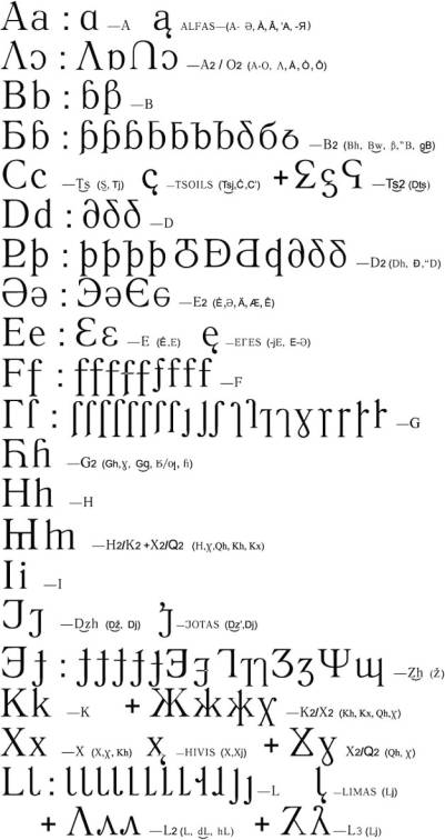 alphabet has their own signs for letters, like Scandinavian runes). History