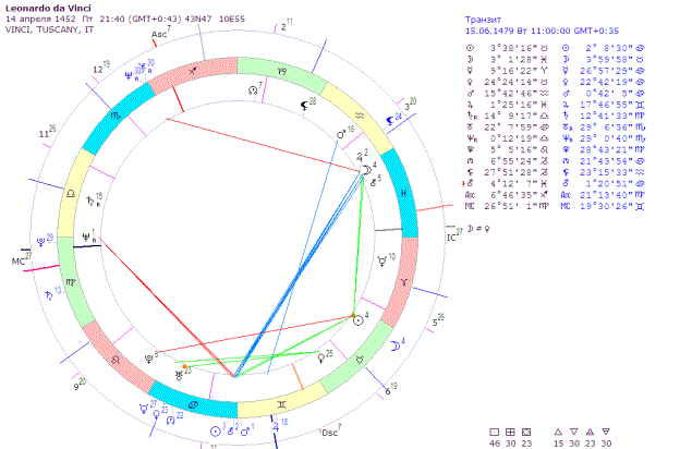 высшей октавы) с его Нептуном (Венерой - высшей октавы) в Зените Леонардо (и
