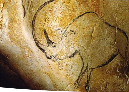 Вымершие животные: предок современной лошади в пещере Ласко (18 тыс. лет до н.э.), шерстистый носорог в пещере Шове во Франции (33 тыс. лет до н.э.)