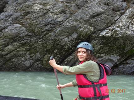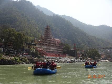 В пятый день мы с Сияной поехали на рафтинг. Я боялась опоздать и нервничала, как обычно в России, проклиная ашрамный автобус, который ненароком уехал в Райвалу без нас, и пришлось садиться на неневистных рикш.– И совершенно зря, потому что ждали только нас, и только для нас была заготовлена большая красная резиновая лодка. На порогах выше Ришикеша буруны волн порой захлестывали её, грозя не только промочить камеру, но и выбросить меня вместе с нею за борт. Мальчики сразу предложили убрать её в непромокаемый мешок, но я настаивала, что хочу поснимать. И только после первого бурного порога, когда камера и вправду промокла, как и почти вся наша одежда, отдала им камеру и фотоаппарат. Поскольку нас было только двое, с двумя мальчиками, особенно хорошо управлять лодкой не получалось. Но и без этого рафтинг в Ришикеше не опасный – резиновую лодку проносит мимо камней, греби-не греби. Хоть я подстраховывалась, немного подержав в больной руке весло – а ведь не чаяла уже! – и убедившись, что при таких мизерных нагрузках всё в порядке.