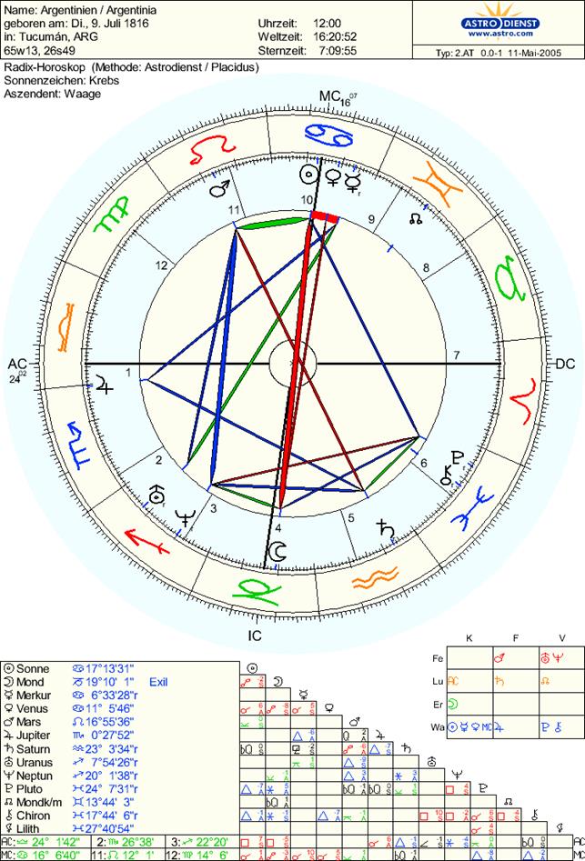 Солнце Аргентины в Раке в Полнолуние, при связке Плутон-Лилит в Рыбах и огненном тригоне Марс-Нептун.