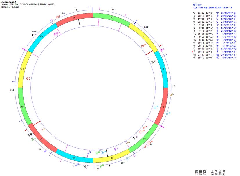 Совмещение гороскопов Екатерины Второй (2 мая 1729 2-30 Щецин)