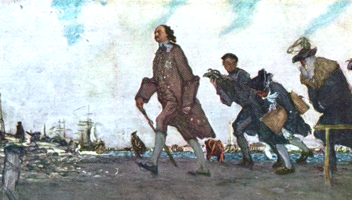 «Но Петру было не до впечатления, оставляемого им в Западной Европе, когда он, наняв в Голландии до 900 человек всевозможных мастеров, от вице-адмирала до корабельного повара, и истратив на заграничную поездку не менее 2 1/2 миллионов рублей».