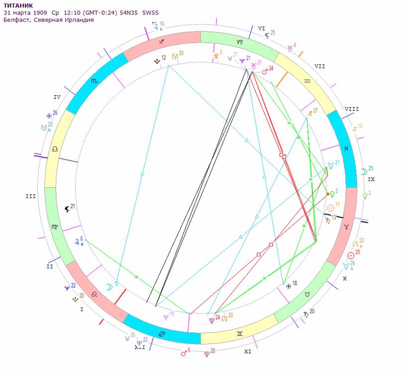 Транз. Нептун против Урана Титаника (точность 13 мин), при этом Нептун и против Марса Тит. на который встала транз. Черная Луна.