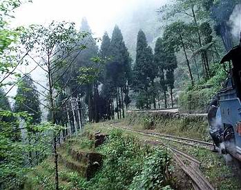 Поезд шел так медленно, что мы получали все объемное и обзорное впечатление от меняющейся перспективы горной местности, как если бы ехали на велосипеде или шли пешком. Рельсы порой зависали над пропастью — но это давало только лучше рассмотреть водопады и лесистые долины, которые к вечеру уже покрывал туман. Прижимаясь к обочине дороги, маленький поезд извивался змеей. Паровозик свистел во всю мочь и пускал клубы дыма, которые черной крошкой оседали в рамках окон. На станциях в него запрыгивали дети, чтобы прокатиться, словно на подножке трамвая. Высунувшись из окна поезда, я снимала детей и совершенно счастливые лица моих спутников. Все-таки молодцы англичане, которые продолжили эту дорогу 150 лет назад! и стоит сказать спасибо индусам, которые ничего не стали в ней менять!