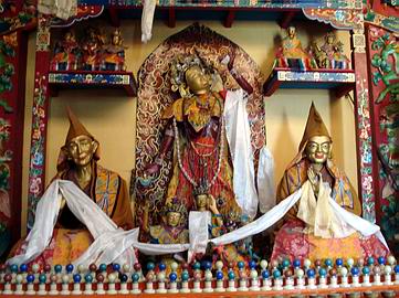 деревянной резьбой и статуями Будды, бодхисаттв и тантрических божеств. Но