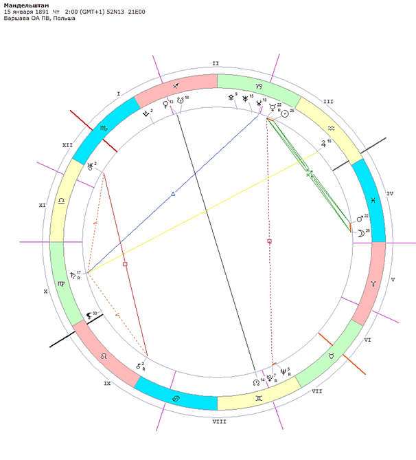 Гороскоп Осипа МАНДЕЛЬШТАМА с астероидами